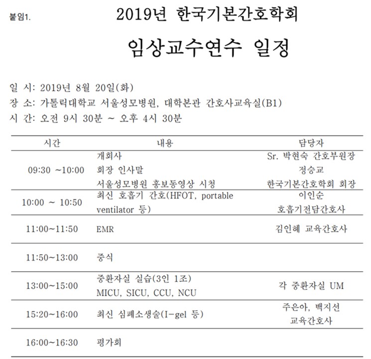 2019년 한국기본간호학회 하계 임상교수연수